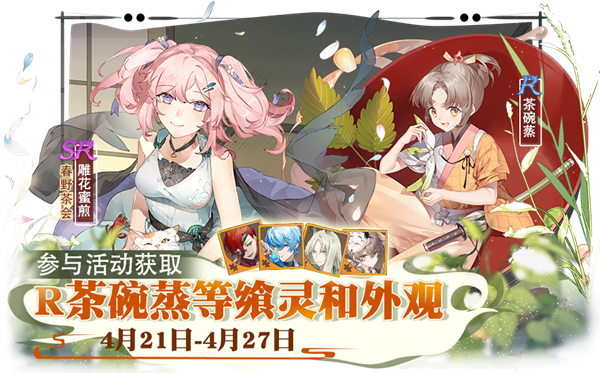 活动描述:活动期间,返场狂欢会主题活动第十八期全新上线。每日完成任务可领取抽奖道具,参与抽奖即有机会获取R飨灵-茶碗蒸、SR雕花蜜煎复刻外观-春野茶会等飨灵,更有珍稀头像框和海量游戏内道具等您来拿。