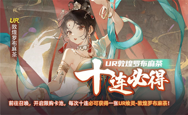 活动描述:活动期间,开启限购卡池,御侍大人可在商城界面使用幻晶石等道具兑换卡池专属道具,该卡池中UR飨灵-敦煌罗布麻茶重返缇尔菈大陆。