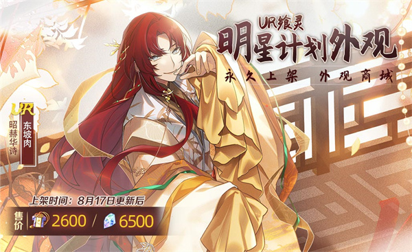 活动描述:活动更新后,UR飨灵东坡肉明星计划外观-昭赫华诗永久加入外观商城进行售卖。