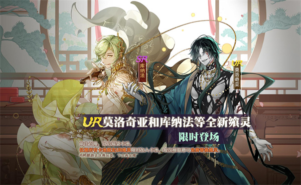 活动描述:周年庆期间,开启双抉卡池,御侍大人可选择1张UR飨灵和2张SR飨灵进入卡池,该卡池UR飨灵-莫洛奇亚与UR飨灵-芬兰驯鹿肉限时加入并且概率UP。PS:鸡鸭鹅跑去庆典玩耍,下次再见哦~