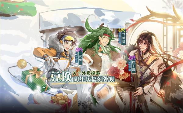 活动描述:活动期间,御侍大人可通过外卖和通关关卡获得不同的道具,来兑换周年庆复刻外观所需要的限时道具,达到指定数量即可兑换此外观。
